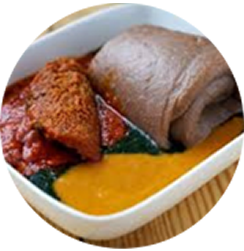 A classic Yoruba trio—soft amala, silky gbegiri, and velvety ewedu—served with rich assorted meats and stew.